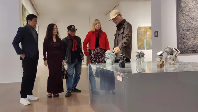 Triển lãm “Hội họa và Điêu khắc Đinh Phong” giới thiệu 31 tác phẩm hội họa và điêu khắc do Giám tuyển Vũ Huy Thông thực hiện, với sự cố vấn nghệ thuật của Điêu khắc gia Đào Châu Hải.